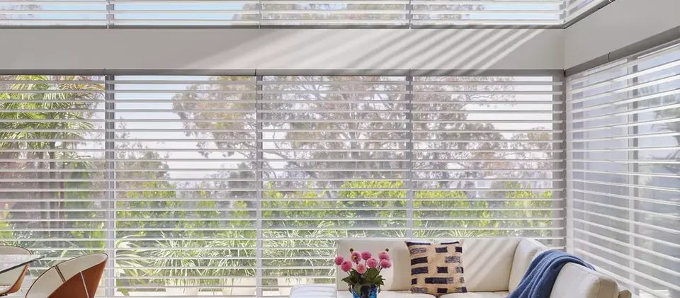 Silhouette shades are elegant window treatments featuring soft, adjustable fabric vanes suspended between two layers of sheer fabric. These shades transform harsh sunlight into a beautifully diffused glow, while offering precise control over light, privacy, and UV protection to safeguard your home’s interiors. With innovative features like the Halo for enhanced light direction and dual shades for room darkening, Silhouette shades provide a perfect balance of functionality and style to elevate any living space.